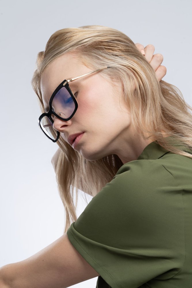 Kancelářské brýle s čirými skly, antireflexní vrstvou a jedinečným čtvercovým designem, určené speciálně pro kancelářskou práci a počítačové hráče. Výrazně navyšují kontrast, zdůrazňují detaily a vizuální vjemy při práci s počítačem. Blokují 35 % modrého světla a 100 % ultrafialového záření, díky čemu minimalizují zatížení očí a celkovou únavu. O maximální komfort se postarají nastavitelná sedla, zatímco lesklý acetátový rám zajistí správnou optickou stabilitu.