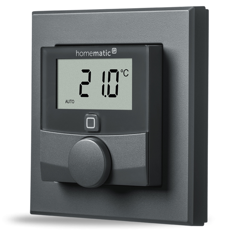 HOMEMATIC IP WIRED - HMIPW-WTH-A - DRÁTOVÝ NÁSTĚNNÝ TERMOSTAT SE SENZOREM TEPLOTY A VLHKOSTI S PODSVÍCENÝM DISPLEJEM, BARVA ANTRACIT