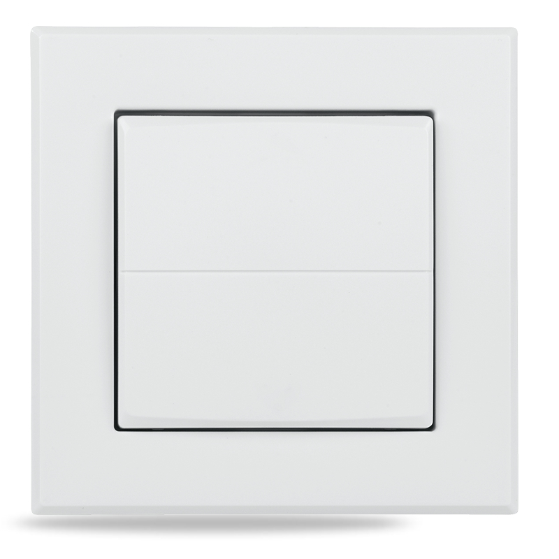 Kryt kolébkového vypínače s rámečkem (HmIP-BRU) pro programovatelné bezdrátové akční členy (HmIP-BRC2, HmIP-BROLL, HmIP-BBL, HmIP-BSM, HmIP-BDT) o velikosti 55 mm je součástí systému chytré domácnosti Homematic IP.
