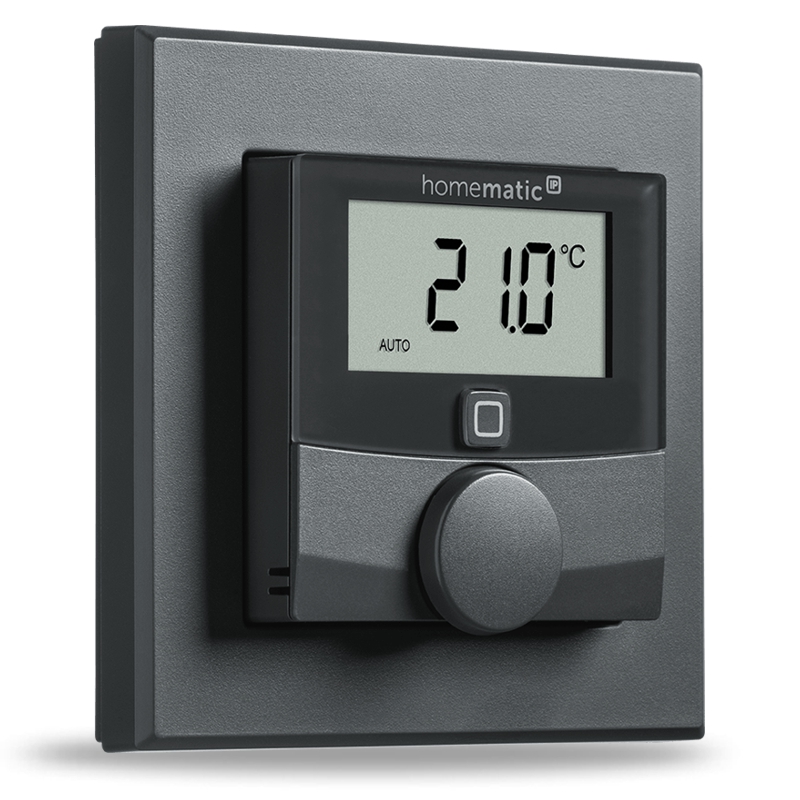 Jedním z takových zařízení je i bezdrátový Nástěnný termostat se senzorem vlhkosti v antracitové barvě (HmIP-WTH-A) z řady Homematic IP s podsvíceným LED displejem o velikosti 1,74" pro zobrazení teploty a vlhkosti představující inteligentní způsob regulace vytápění a úspory energií.