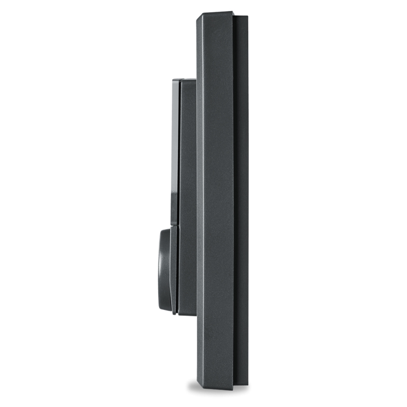 Svými kompaktními rozměry je Nástěnný termostat (HmIP-WTH-A) velikostně srovnatelný s vypínačem světla. Zařízení je možné intuitivně ovládat prostřednictvím otočného prstence, který současně plní funkci tlačítka. Teplotu lze přesně nastavit v krocích po 0,5 °C, ta je následně automaticky vysílána směrem k Centrální jednotce (HmIP-HAP).