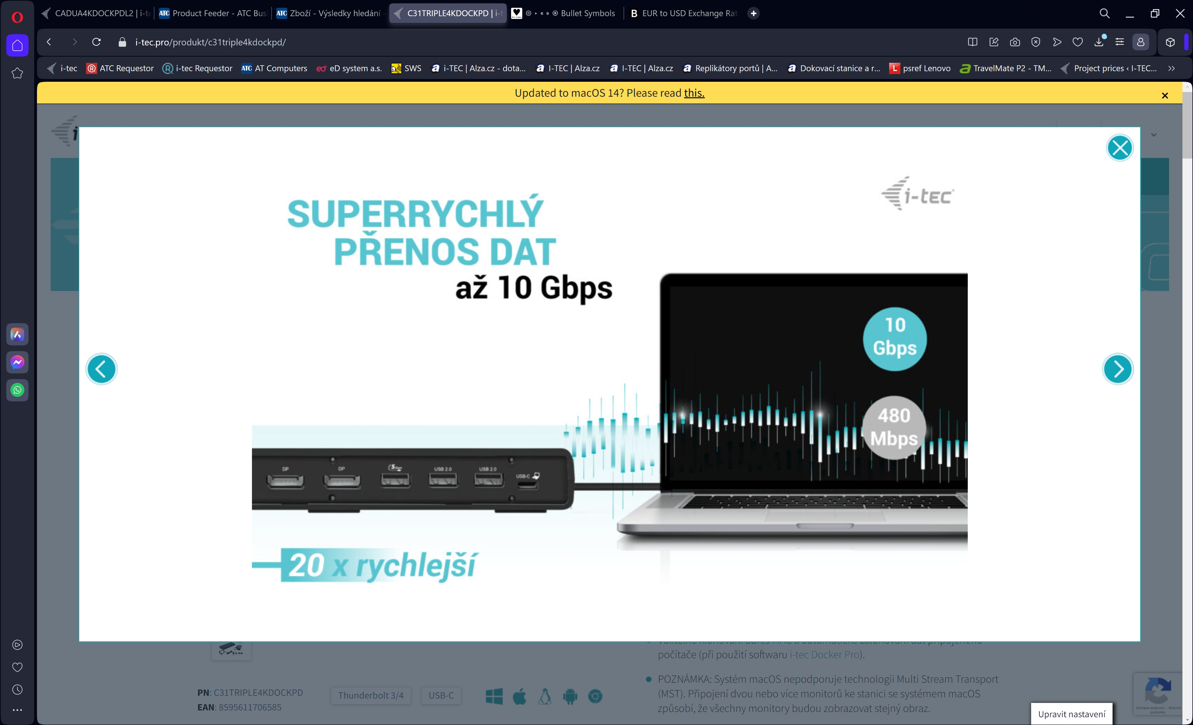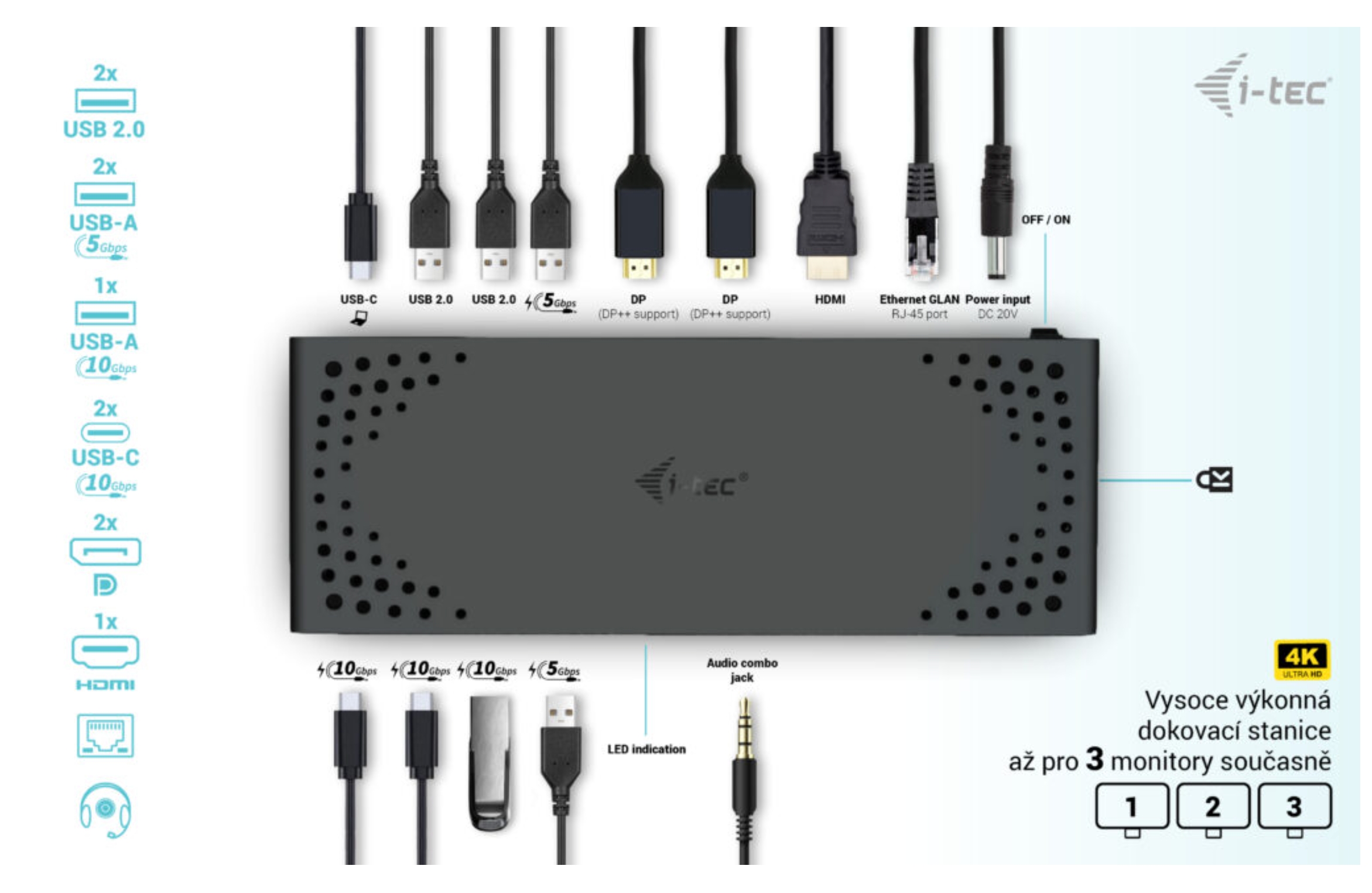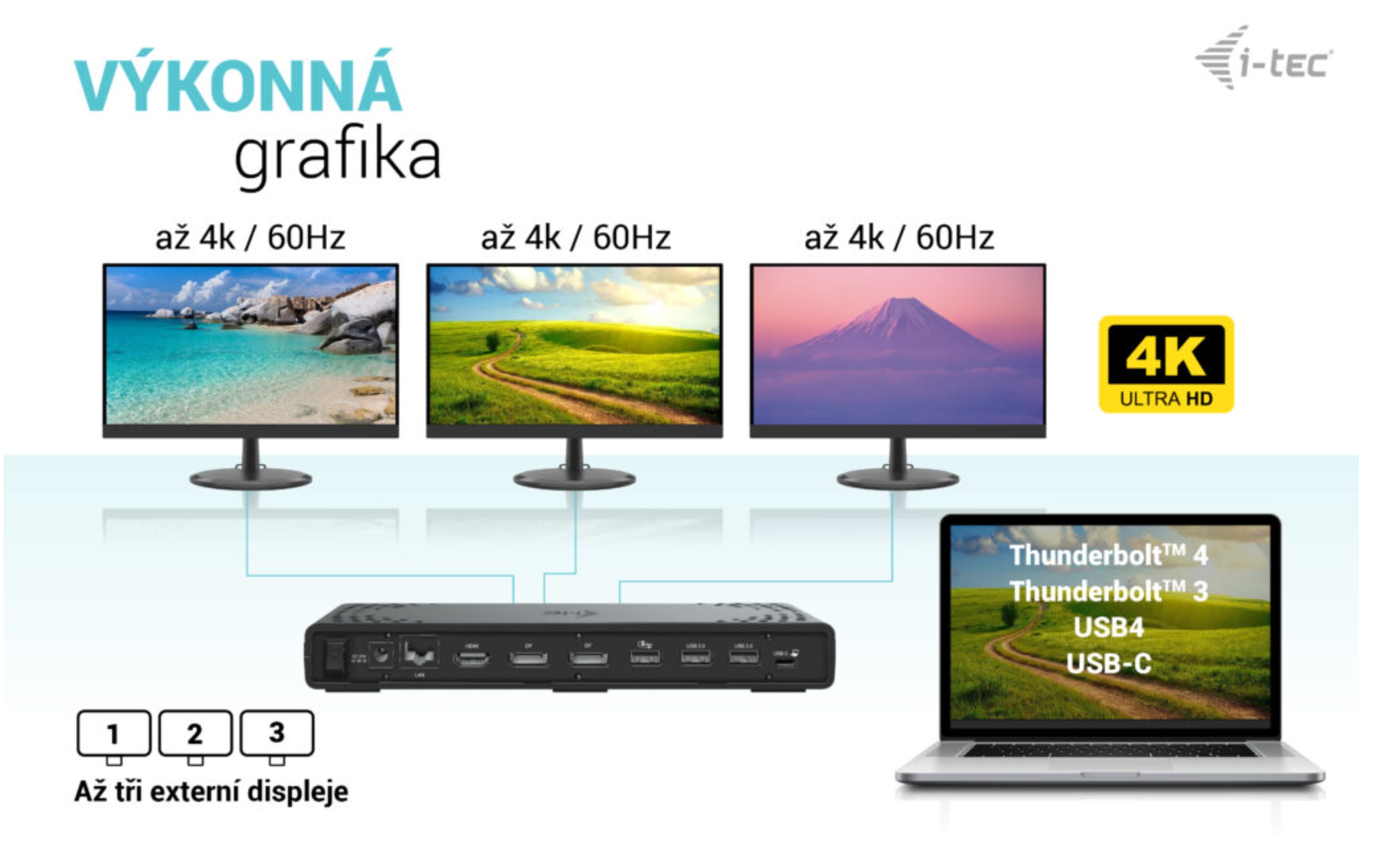 Vysoce výkonná dokovací stanice USB-C nové generace, která podporuje výstup až na tři externí monitory ve vysokém rozlišení až 4K. Dokovací stanici lze používat prakticky se všemi notebooky vybavenými porty USB-C, USB4 a Thunderbolt“ 3/4 a zároveň podp...Více info
