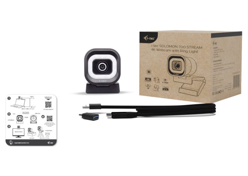 i-tec webkamera SOLOMON 700 STREAM/ Ultra HD 4K rozlišení/ PDAF/ LED světlo/ dva mikrofony/ USB-C