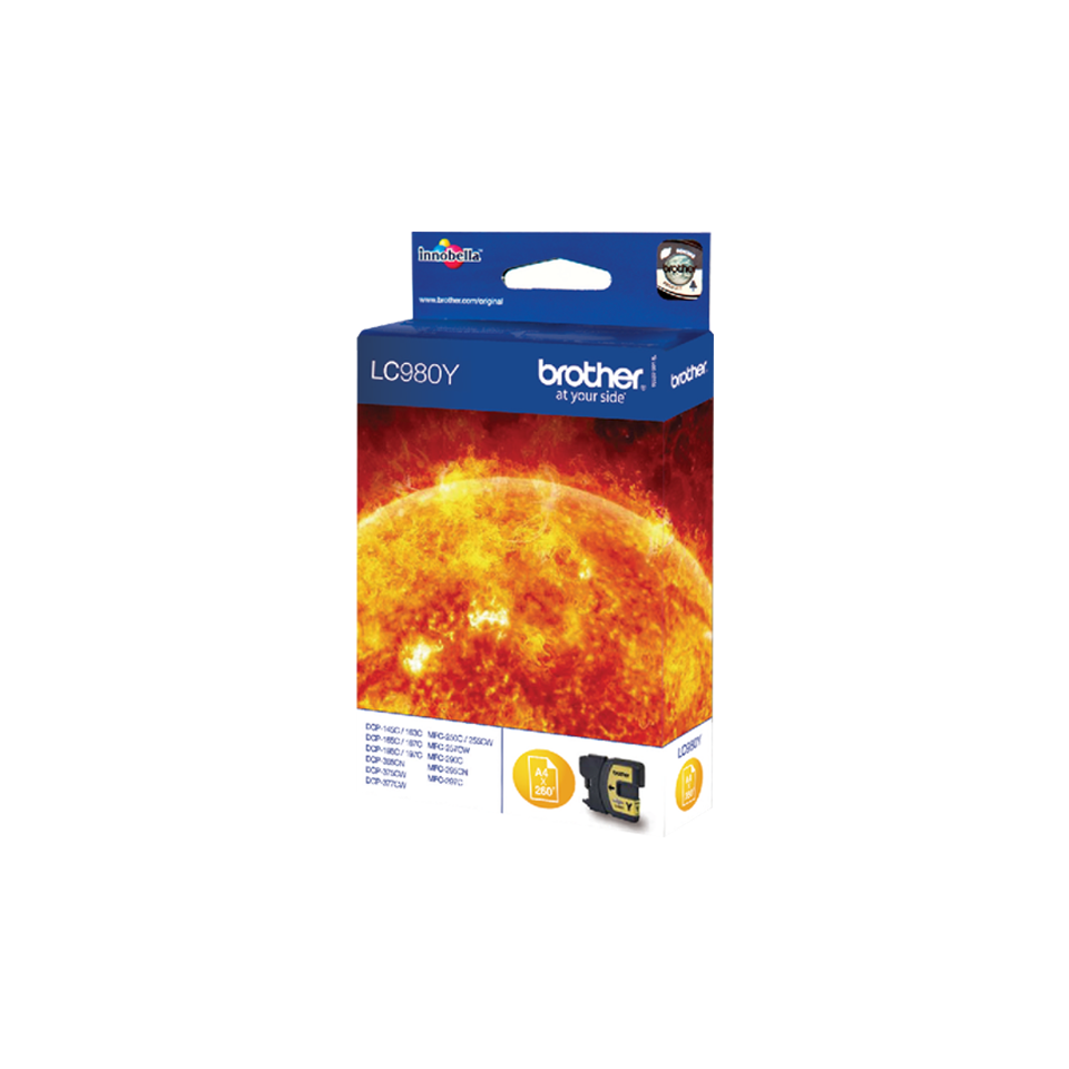 Jednotka Brother LC980Y je vysoce kvalitní originální inkoustová kazeta se žlutým inkoustem. Kazeta vytiskne 260 stran podle normy ISO/IEC24711.