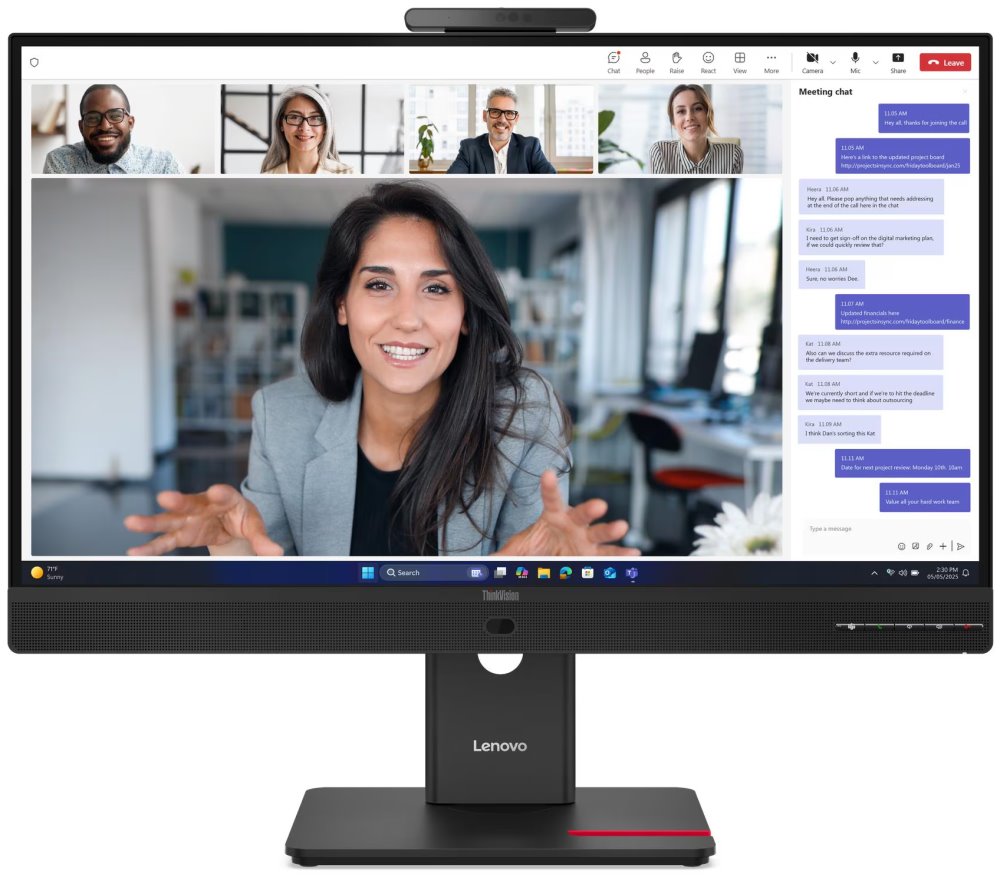 Monitor Lenovo ThinkVision T27QD-4v se vyznačuje stylovým designem s tenkými rámečky. Díky tomu je zajištěn elegantní vzhled i praktičnost pro sestavy s více monitory. Ve výbavě figuruje také integrovaná 5Mpx webkamera s IR podporou, kompatibilitou Windows Hello kompatibilitou a mikrofonem pro videokonference.