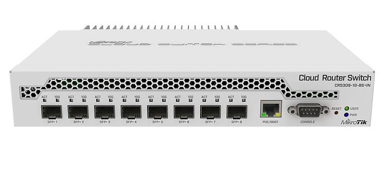 CRS309-1G-8S+IN je velice výkonný, avšak kompaktní síťový přepínač. Disponuje osmi sloty pro SFP+, které podporují až 10 Gbit na každý slot. Celková kapacita přepínání je až 162 Gb/s a kapacita bez blokování 81 Gb/s.