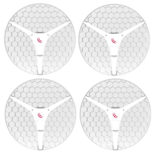 Balení 4 kusů RBLHG-5HPnD-XL. Jedná se o lehké bezdrátové zařízení s integrovanou 27dBi mřížkovitou anténou zajišťující vysokou odolnost proti větru. Je ideální pro point-to-point spojení nebo pro klienty / zákazníky na delší vzdálenosti. Oproti standardní verzi má tato o 3dB vyšší vysílací výkon a 2,5dBi vyšší anténní zisk. Velikou výhodou oproti jiným produktům je zabudovaná rádiová část přímo do ohniska antény, čímž odpadají veškeré ztráty na RF kabelech. RBLHG-5HPnD-XL je dodáván ve velmi lehce smontovatelné formě s kompaktními rozměry balení. Součástí balení je i velmi šikovný kit, který slouží k náklonu o 5° oproti původní pozici.