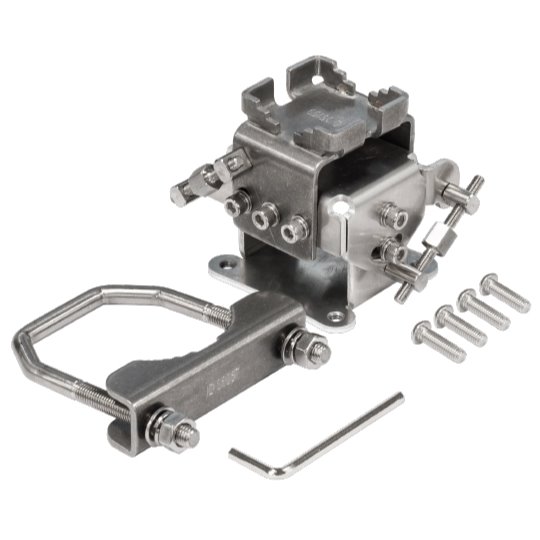Precizní polohovací kovový držák k uchycení jednotek LHG na stožár či konzoli.