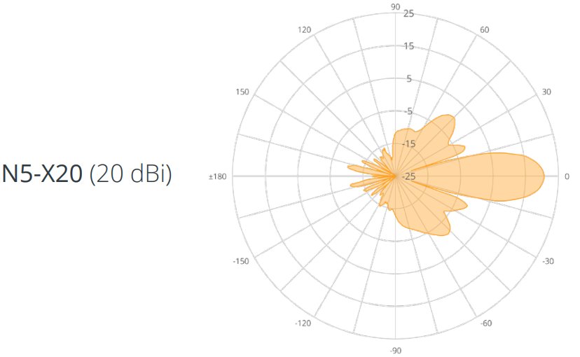 N5-X20 je parabolická směrová anténa se ziskem 20dBi a vyzařovacím úhlem 12° pro použití s jednotkou C5x. Jednotka C5x se k anténě připojuje pomocí Twist-on konektoru, který eliminuje ztráty způsobené VF kabeláží a konektory.