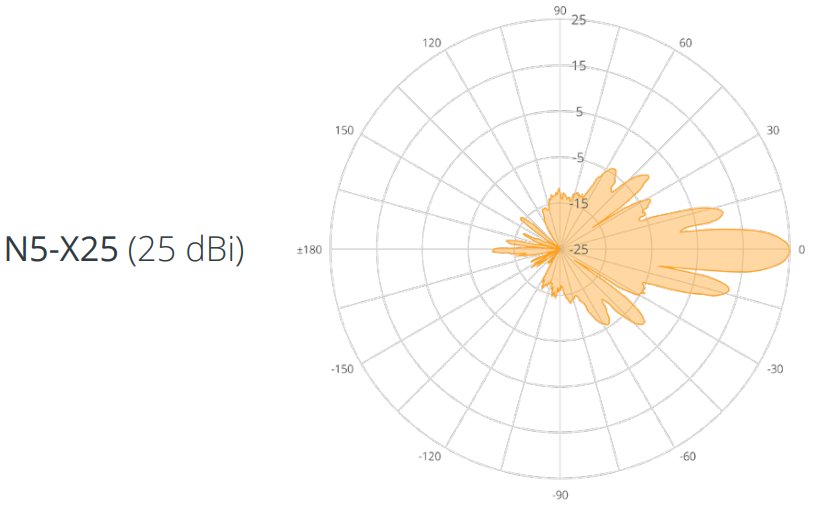 N5-X25 je parabolická směrová anténa se ziskem 25dBi a vyzařovacím úhlem pro použití s jednotkou C5x. Jednotka C5x se k anténě připojuje pomocí Twist-on konektoru, který eliminuje ztráty způsobené VF kabeláží a konektory.
