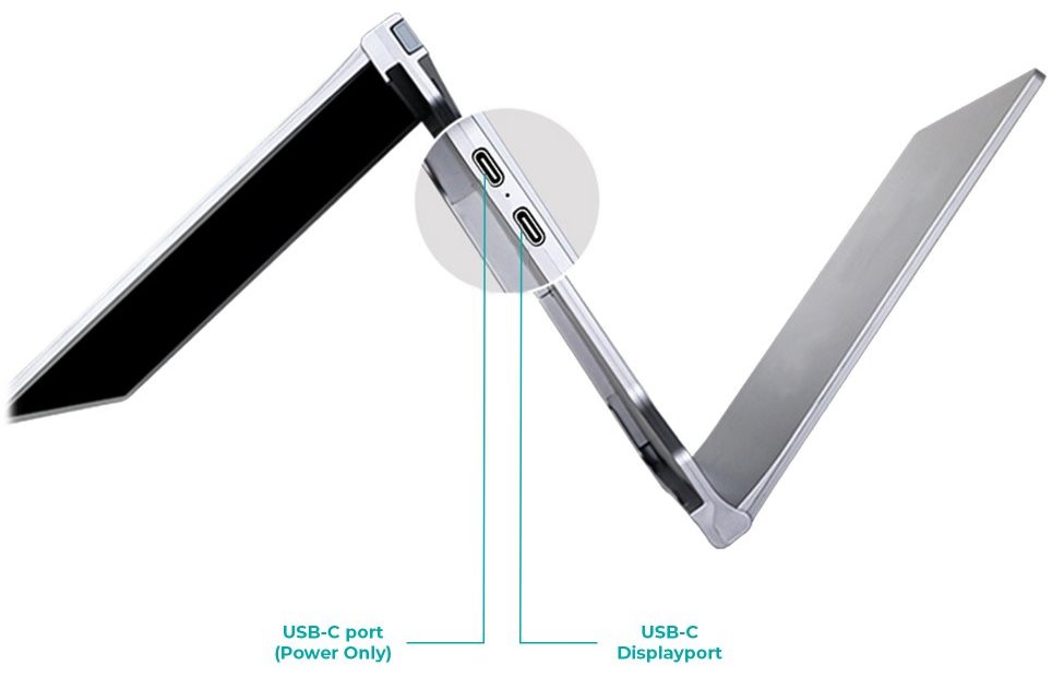 Set dvou přenosných monitorů s úhlopříčkou 14" a Full HD rozlišením 1920 × 1080 bodů je vhodný zejména pro uchycení k notebookům o velikosti 14" až 18". Umožňuje tak rozšířit pracovní plochu hned o dva monitory, ať jste kdekoliv. Nabízí jas 250 cd/m2, dobu odezvy 25 ms a kontrastní poměr 1000 : 1. Příjemné jsou také pozorovací úhly 178° horizontálně i vertikálně. Patentovaný skládací mechanismus umožnuje velmi snadné skládání a rozkládaní monitorů. Pro připojení k notebooku vyžaduje pouze jediný kabel USB-C, a to jak pro video signál, tak i pro napájení. Pokud notebook nedisponuje konektorem USB-C, je možné provést připojení pomocí dvou portů USB-A (kabel součástí balení). Zajisté potěší také kompatibilita s procesory Apple M1 a M2. Díky integrovanému stojánku je lze použít i jako samostatně stojící monitory.