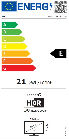 MSI MAG 274CF X24 Typ obrazovky: Rapid VA Úhlopříčka [palce]: 27 Rozlišení: 1920 x 1080 (FHD) Rozteč bodu [mm]: 0,3114 (H) x 0,3114 (V) Obnovovací frekvence [Hz]: 240 Poměr stran: 16:9 Povrch displeje: Antireflexní Jas [nits]: *SDR: 300 nit...Více info