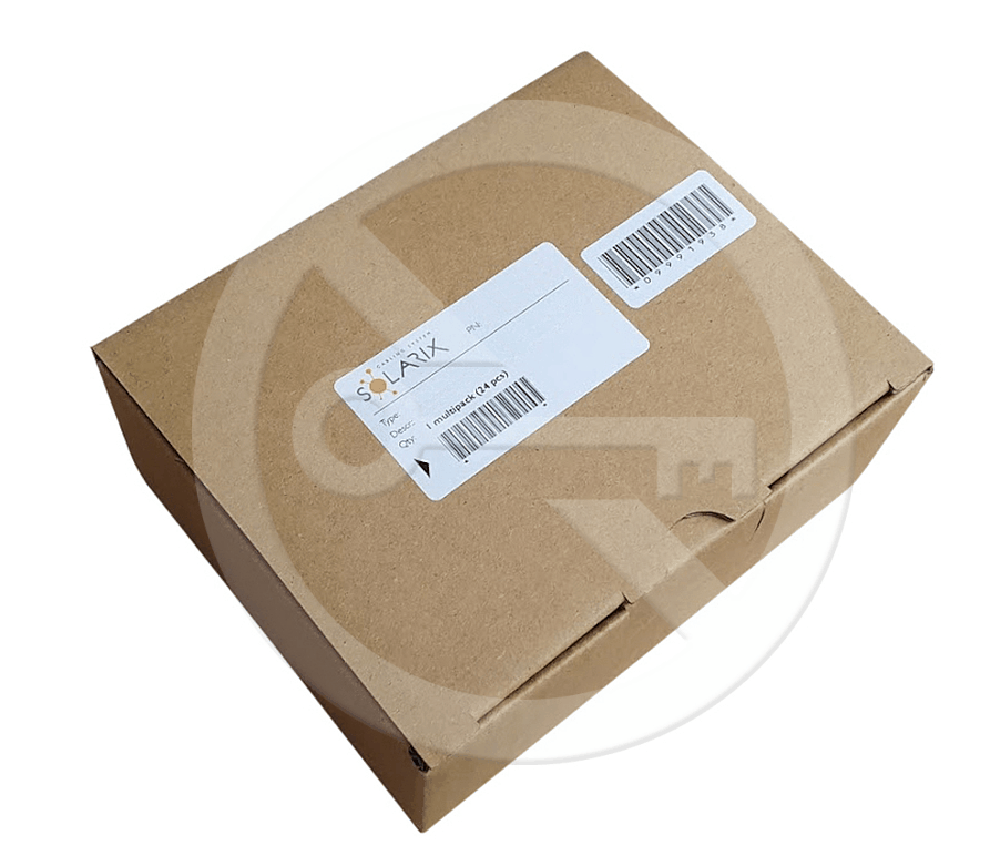 V tomto novém multipack balení jsou samořezné keystony Solarix k dispozici po 24 kusech, a to v recyklovatelném kartónovém boxu a bez plastových sáčků. Tento způsob balení je tedy mnohem šetrnější k životnímu prostředí (tj. místo v plastových obalech je 24 keystonů zabaleno v jednom recyklovatelném papírovém boxu) a rovněž toto balení umožní rychlejší dostupnost keystonů při instalaci (tj. není potřeba keystony vybalovat každý zvlášť).