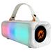 Přenosný reproduktor s výkonem 100 W a barevným LED podsvícením zajistí dostatečné ozvučení vaší párty. Hudbu lze přehrávat jak drátově skrze AUX vstup, tak i bezdrátově pomocí technologie Bluetooth. Pro rychlé přehrávání z paměťových médií je přítomen USB port. Pokud si párty chcete opravdu užít, můžete využít také bezdrátový mikrofon (součástí balení). Vestavěná baterie zajistí až 5 hodin provozu. Nabíjení je realizováno skrze konektor USB-C.