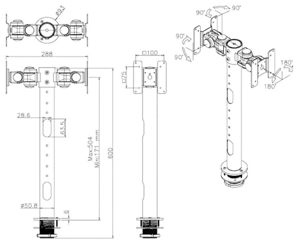 Flexibilní stolní VESA držák pro 2 ploché LCD monitory o velikosti 10" až 30" a maximální nosnosti do 20 kg (2× 10 kg). Univerzální technologie naklápění, otáčení a rotace umožňuje optimální nastavení. Veškerý instalační materiál je součástí výrobku.