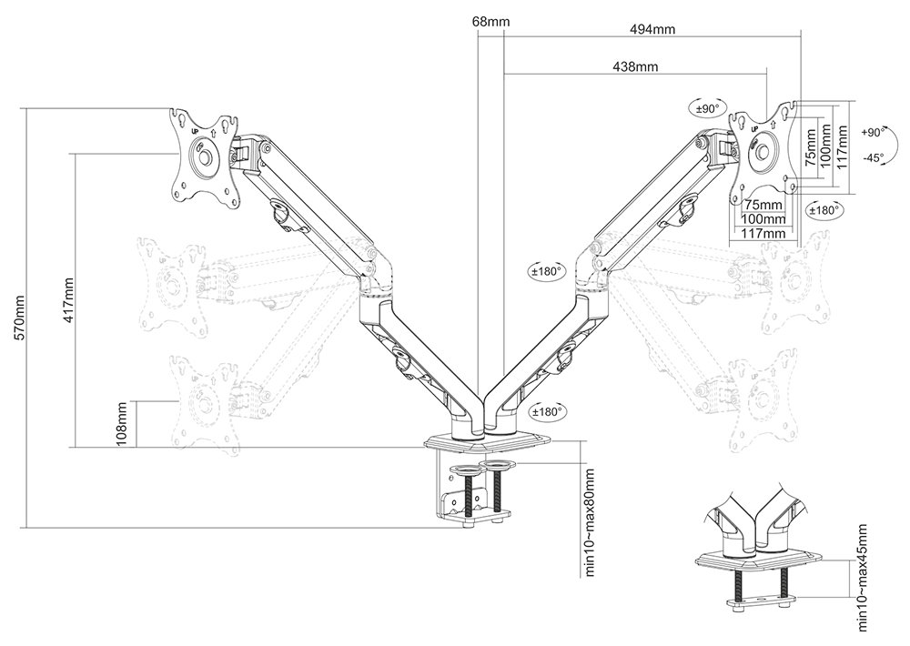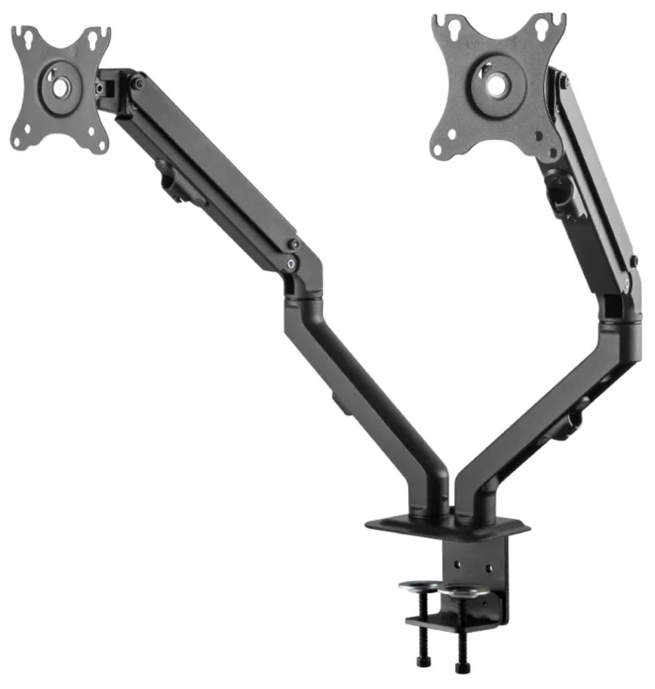 Flexibilní stolní VESA držák pro 2 ploché LCD monitory o velikosti 17" až 27" a maximální nosnosti do 14 kg (2× 7 kg). Univerzální technologie naklápění, otáčení a rotace umožňuje optimální nastavení.