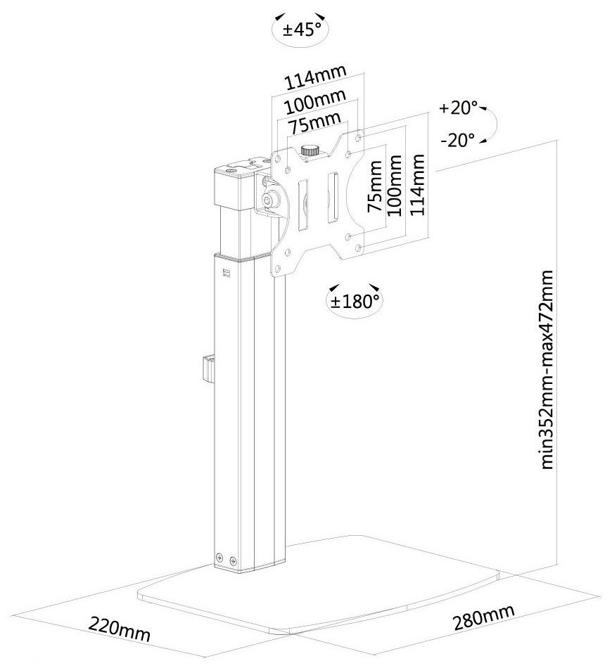 Flexibilní VESA stojan pro plochý LCD monitor o velikosti 10" až 32" a maximální nosnosti do 7 kg. Univerzální technologie naklápění umožňuje optimální nastavení. Veškerý instalační materiál je součástí výrobku.