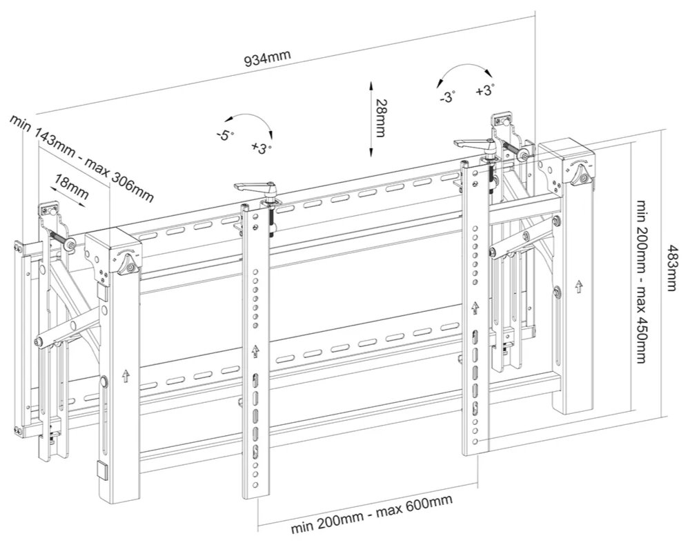 Fixní držák na zeď pro montáž monitorů a televizí s úhlopříčkou 32" až 75" a hmotností až 70 kg. Tento nástěnný držák je speciálně vyroben pro použití ve videostěnách.
