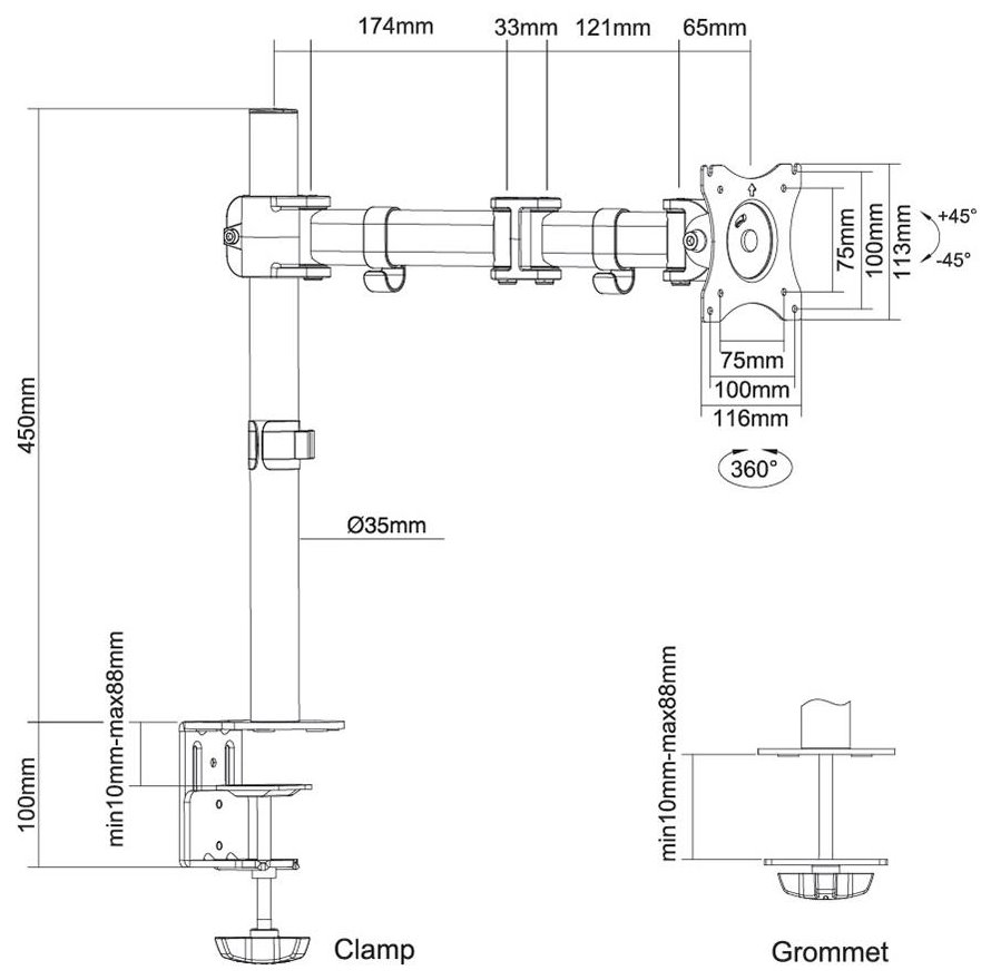 Flexibilní stolní VESA držák pro plochý LCD monitor o velikosti 10" až 30" a nosnosti do 8 kg. Univerzální technologie naklápění, otáčení a rotace umožňuje optimální nastavení. Veškerý instalační materiál je součástí výrobku.