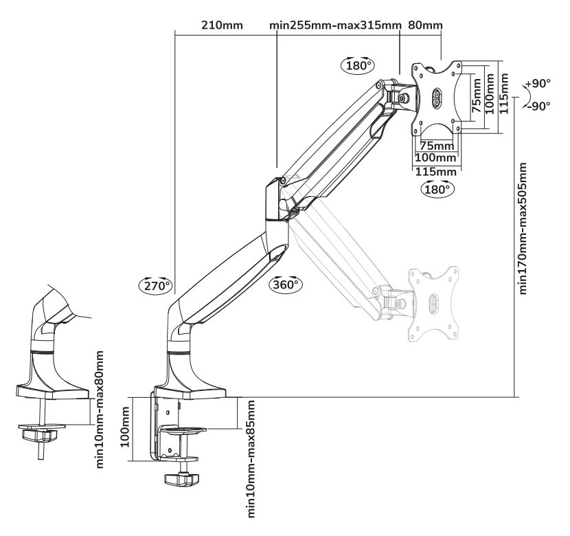 Flexibilní stolní VESA držák pro plochý LCD monitor o velikosti 10" až 32" a maximální nosnosti do 9 kg. Univerzální technologie naklápění, otáčení a rotace umožňuje optimální nastavení. Veškerý instalační materiál je součástí výrobku.