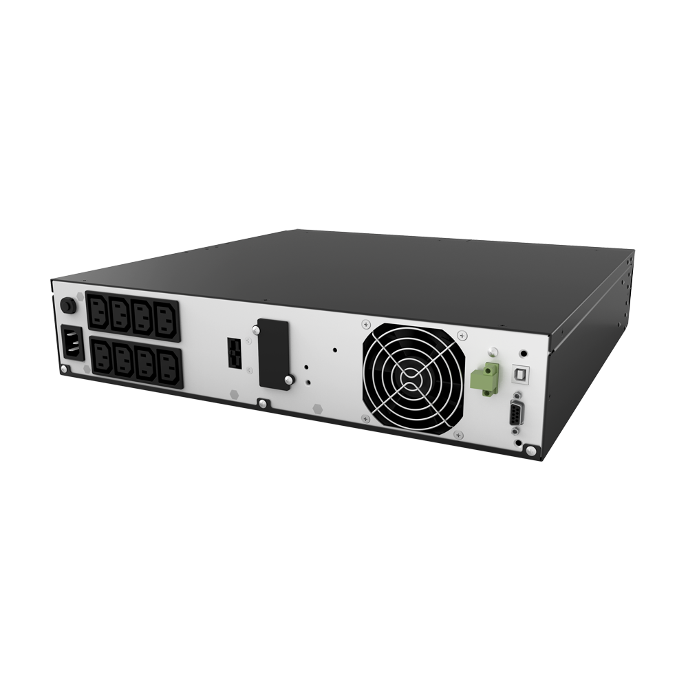 - Komunikační porty: HID USB / RS232 / EPO / SNMP EBM (volitelné)