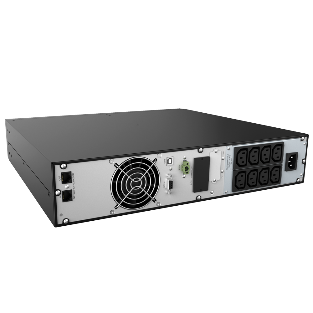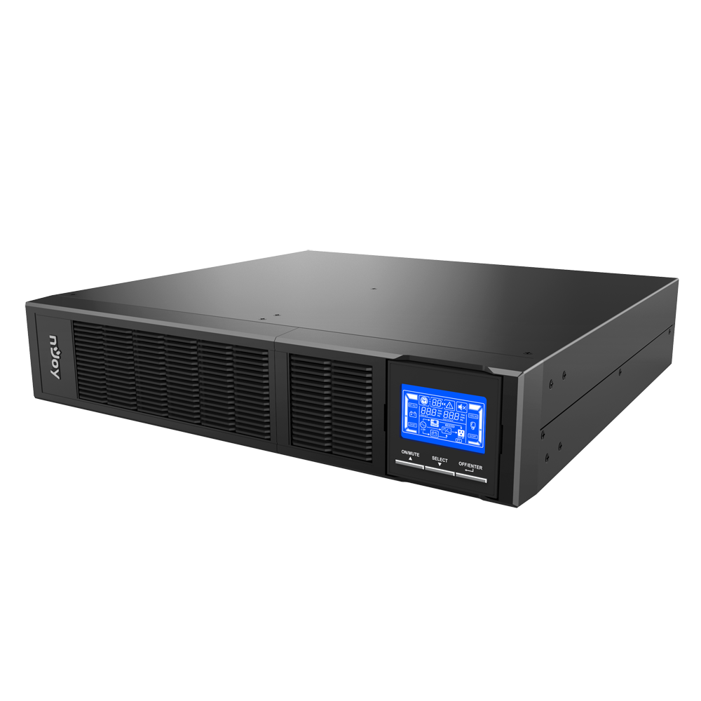 UPS disponuje LCD displejem, který zobrazuje úroveň zatížení, stav baterie, vstupní/výstupní napětí, časovač vybití, chybové hlášky.