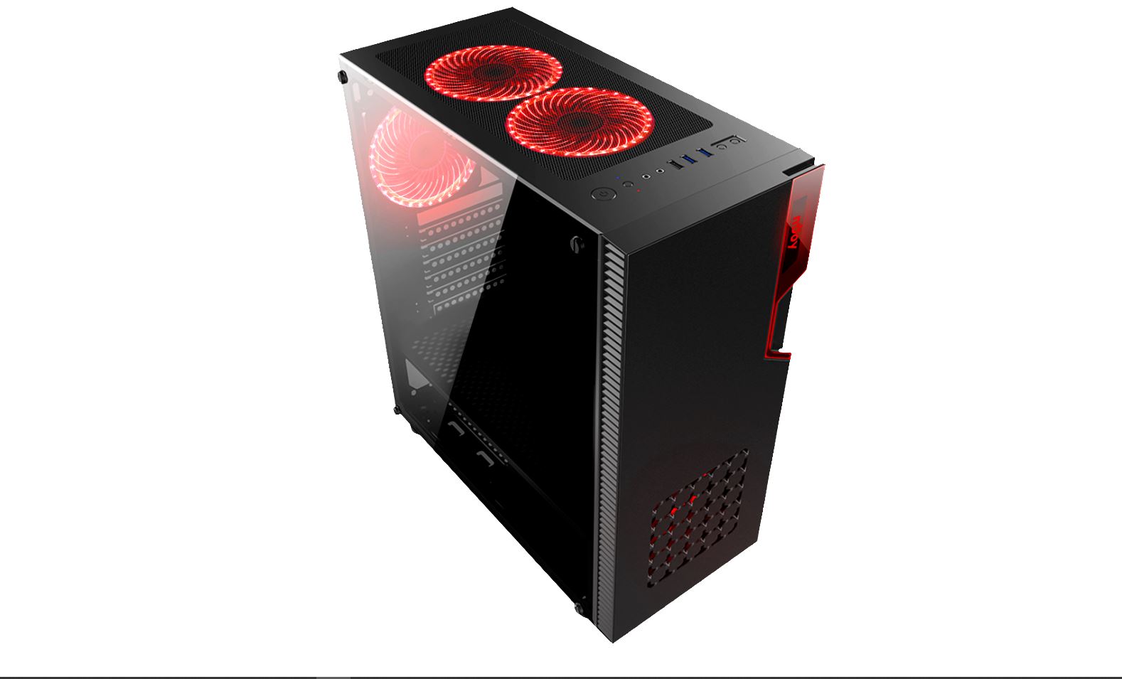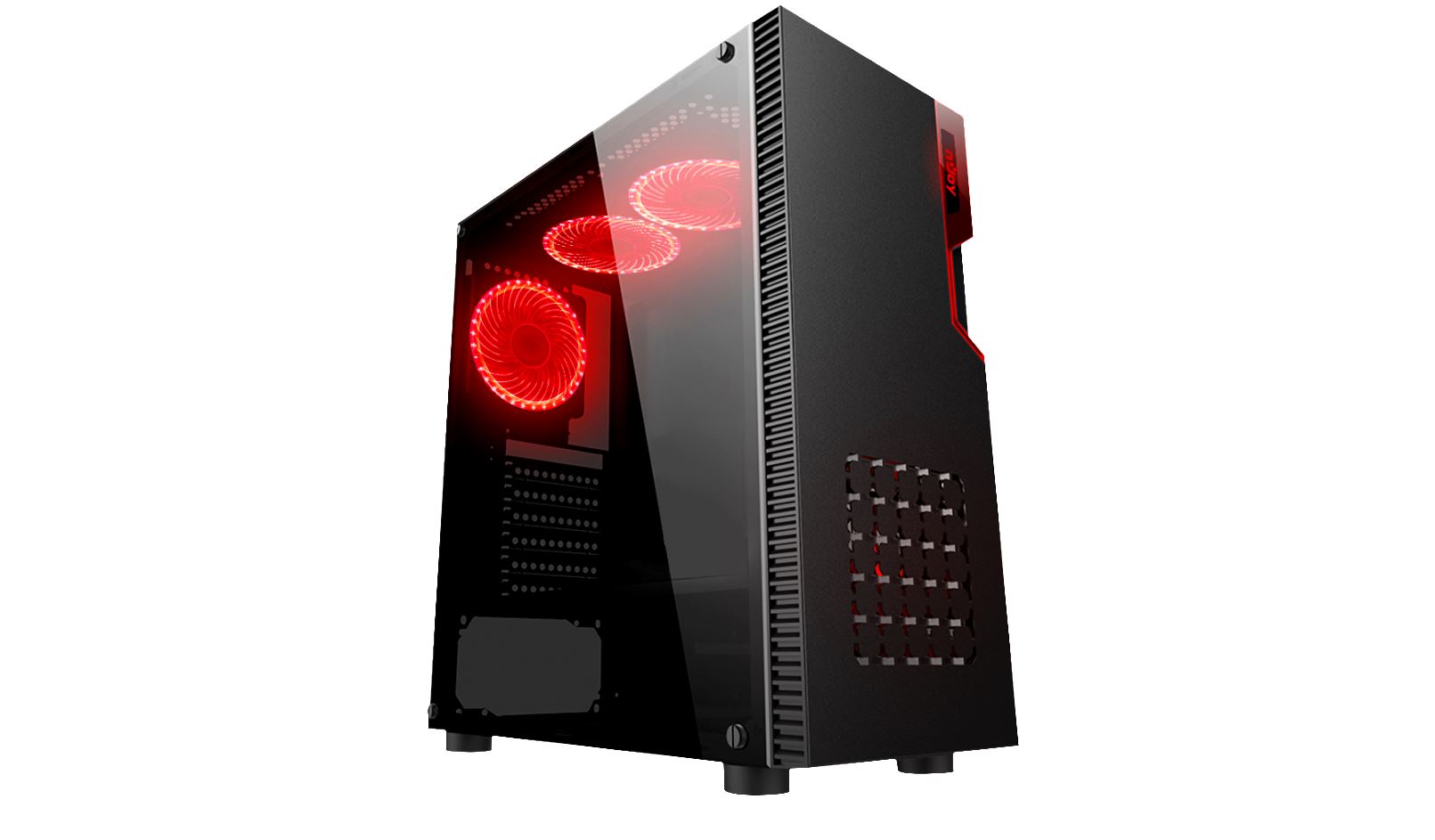 Case disponuje transparentním akrylovým bočním panelem, který nabízí jedinečný výhled na červené LED osvětlení.