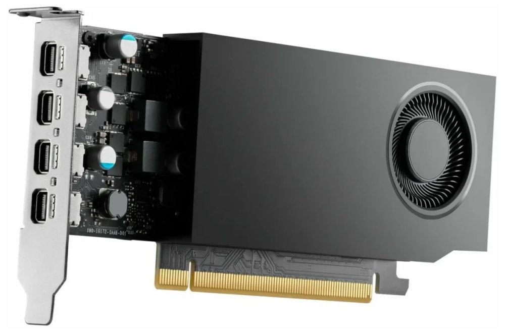 Karta je vybavena 4 GB paměti GDDR6 se 64bitovým rozhraním a šířkou pásma 96 GB/s. Díky čtyřem konektorům mini DisplayPort 1.4a můžete vytvořit rozsáhlé pracovní prostory s více monitory pro efektivní vizualizaci velkého množství dat.