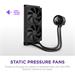 Vše lze ovládat intuitivně pomocí softwaru NZXT CAM. Tento model vodního chladiče je vybaven rovněž ventilátory s vysokým statickým tlakem, které zajišťují účinný odvod tepla, když je to zrovna potřeba. A když to potřeba není, díky režimu Zero RPM pracuje v naprostém tichu. Celková konstrukce se vyznačuje snadnou instalací a kompatibilitou s moderními sockety. Vyztužené hadice s nylonovým opletením zajišťují dlouhou životnost a jednoduchou manipulaci při instalaci.