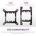 Předaplikovaná termální pasta a jediný propojovací kabel z pumpového bloku urychlují instalaci a snižují nepořádek s kabely. Beznástrojové montážní držáky podporují nejnovější sockety AMD a Intel, včetně AM5 a LGA 1851.