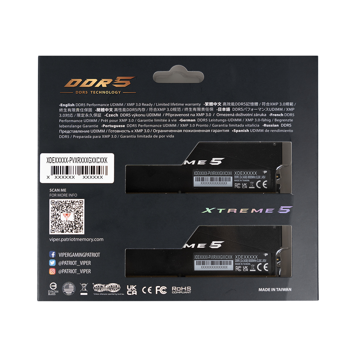 (Registrace)Patriot Viper Xtreme 5/DDR5/32GB/8000MHz/CL38/2x16GB/RGB/Black