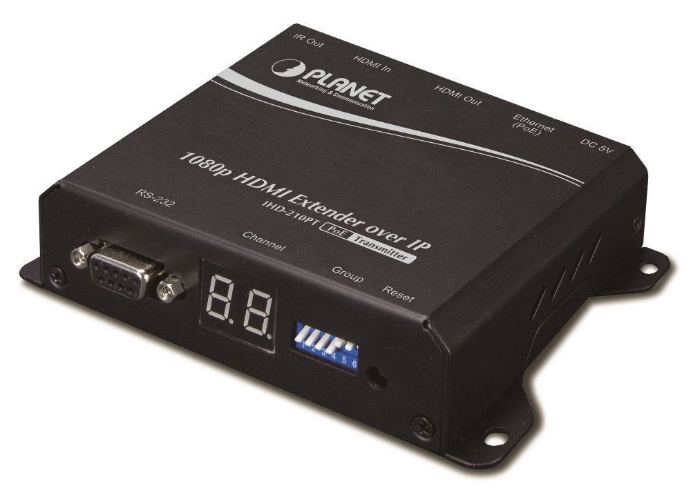 PLANET IHD-210PT; Vysílac distribuce pro extender pres sít LAN (ethernet), podpora rozlišení Full HD, komprese H.264. Prenos 64 nezávislých kanálu. Podpora identifikace EDID a ochrany HDCP. Spojení bod-bod nebo multicast. Správa utilitou, IR vysílac p...Více info