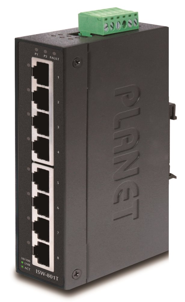 PLANET ISW-801T 8portový přepínač 10/100Base-TX pro průmyslové aplikace.Krytí IP30, hliníková skříň, rozšířený rozsah pracovní teploty -40 až 75°C. Montáž na DIN lištu nebo přímo na zeď. EFT+ESD ochrana do 6kV. Duální napájení DC+AC, EEE-energetick...Více info
