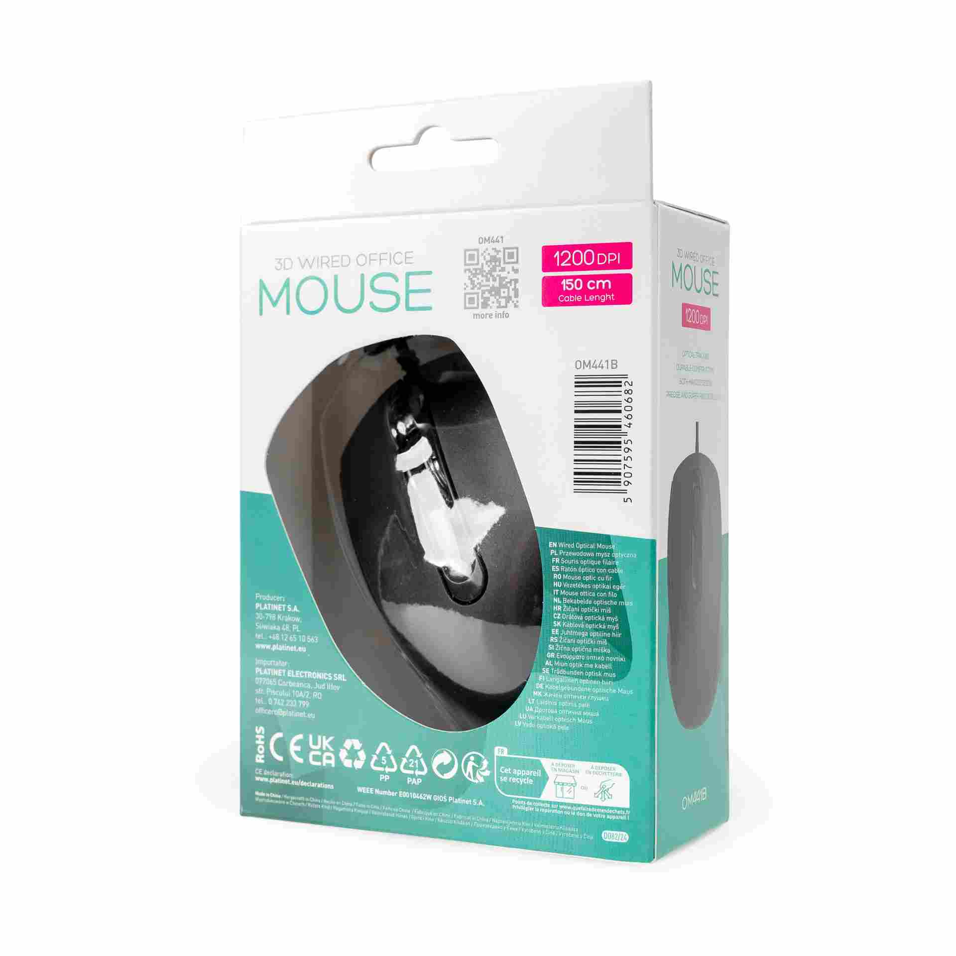 (Registrace)PLATINET OMEGA PC MYŠ 3D, OFFICE, 1200DPI, 1.5M USB-A ČERNÁ