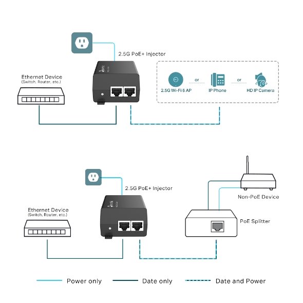 PoE adaptér TP-Link POE260S vám umožní rozšíření sítě. Využijete ho především na místě, kde nemáte přístup k elektrické energii. Spolupracuje s 2,5G přístupovými body, IP kamerami, IP telefony a dalšími podobnými zařízeními. Adaptér/injektor je vybavený 2 porty s rychlostí 2,5 Gb/s. Zajistí vám rychlý přenos dat.