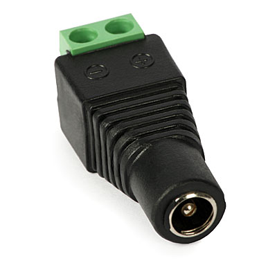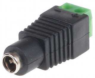 Redukce ze dvou-pólové svorkovnice na standardní DC jack o velikosti 2.1/5.5mm. Redukce je vhodná pro napájení kamer nebo jiných zarízení nedisponujících technologií PoE. Stací privést dvoulinku s DC napájením a jednoduše jej pripojíte do svorkovnice s..