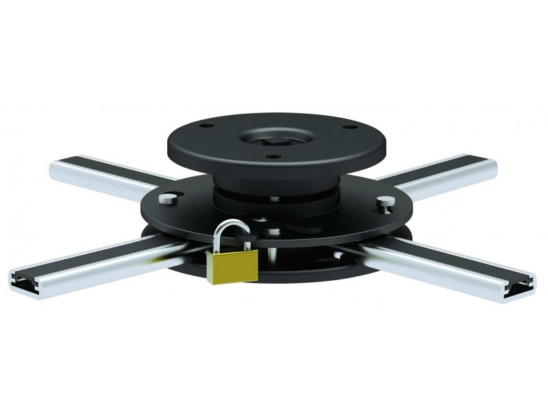 Držák na strop pro projektory. 360° otočná konstrukce a funkce náklonu o ±10° umožňuje maximální flexibilitu zobrazení. Nastavitelná nosná ramena se hodí pro většinu projektorů se vzdáleností otvorů od 160 mm do 330 mm. Maximální zatížení tohoto držáku je 20 kg. Držák navíc disponuje bezpečnostním otvorem pro umístění visacího zámku (zámek není součástí balení).