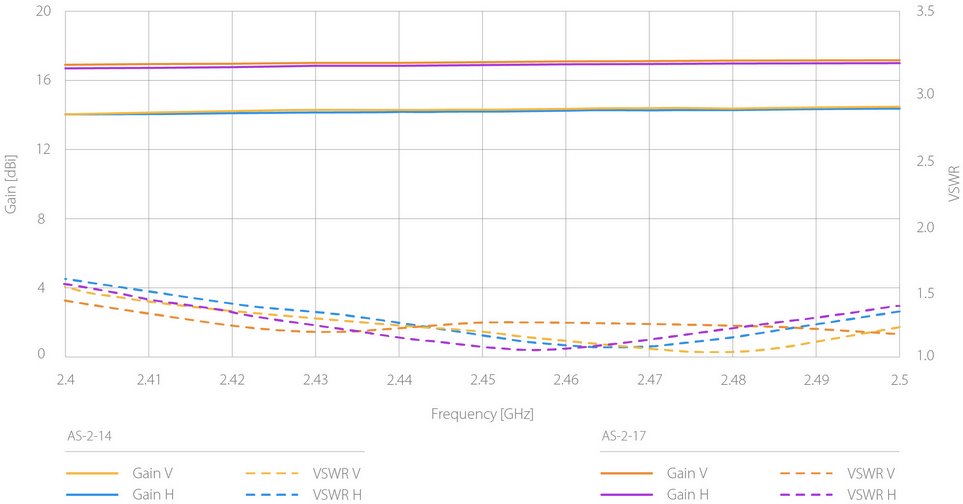 Sektorová dualpolarizační anténa Array Sector 2-14 od výrobce RF Elements pracující ve frekvenčním pásmu 2.4 GHz se ziskem 14 dBi a vyzařovacím úhlem 112°. Důležitým prvkem zabudovaným do struktury antény je tzv. Backshield, což je frekvenční reflektor zabudovaný do struktury antény určený ke zmenšení postraních laloků a zadního záření.