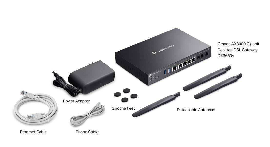 (Registrace)Router TP-Link DR3650V VPN WiFi 6, 1x GWAN + 4x GLAN, 1x DSL, 2x FXS, USB, Omáda SDN
