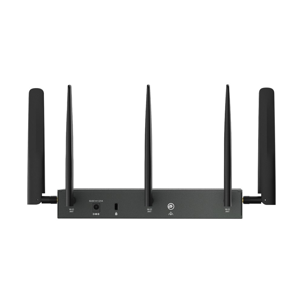 Wi-Fi router, 4x port s podporou PoE+, 2x slot na Nano SIM kartu, bezdrátové Wi-Fi 6 pripojení, rychlost 2 402 Mb/s na frekvenci 5 GHz a 574 Mb/s na frekvenci 2,4 GHz, snadná centralizovaná správa v aplikaci Omada.Více info