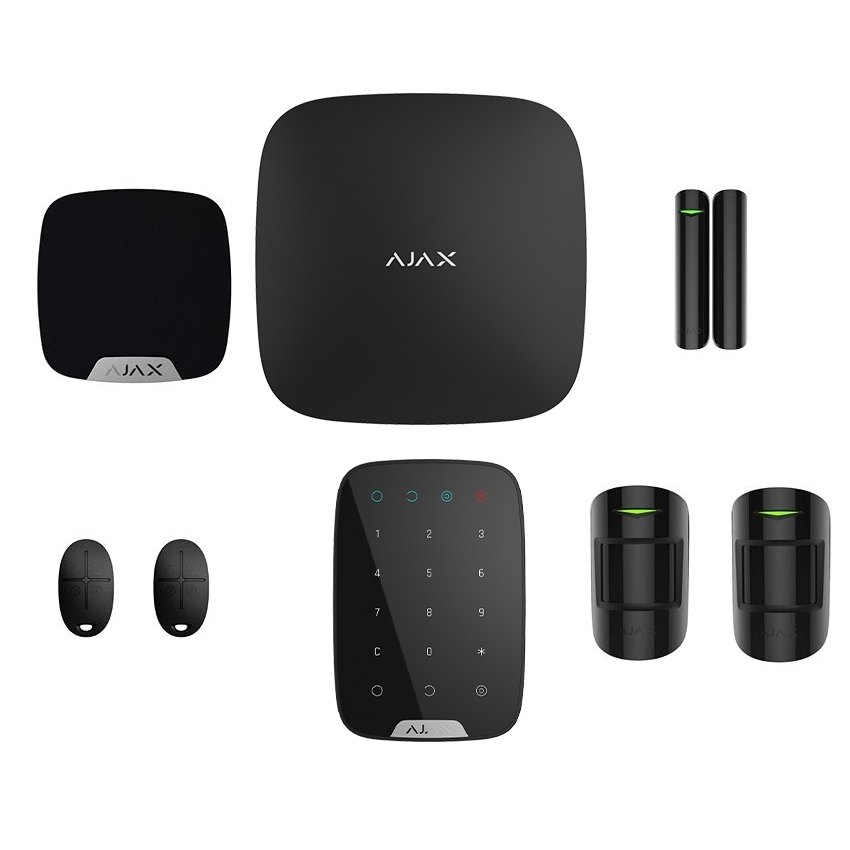 - Ajax KeyPad - Umožňuje zapnout/vypnout alarm pomocí kódu nebo RFID čipu, ideální pro děti nebo návštěvy, kterým nechcete dát přístup k mobilní aplikaci.