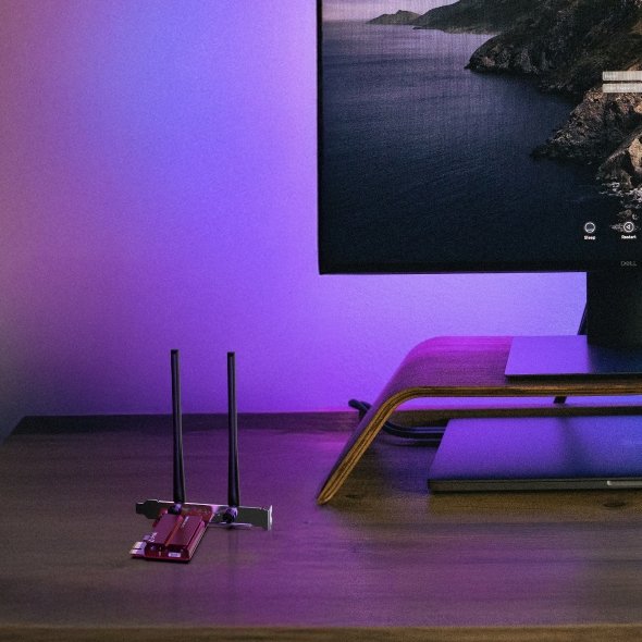 Sítová karta, 2 pevné a výkonné antény, trípásmové pripojení - 2 882 Mbit/s v pásmu 6 GHz a 5 GHz a 688 Mbit/s v pásmu 2,4 GHz, Wi-Fi 7, MU-MIMO, OFDMA, Bluetooth 5.4, bezpecnostní standard WPA3.Více info
