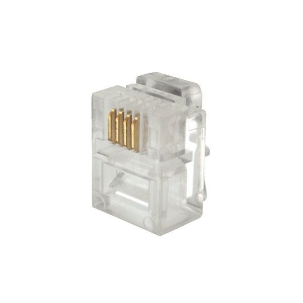 Nestíněný konektor RJ 11 pro připojení telekomunikačních zařízení, 6p4c. Pro vodič licna a plochý kabel. Konektory Solarix typu RJ11 jsou spolehlivé komponenty, které jsou konstrukčně uzpůsobeny tak, aby bylo zajištěno bezchybné spojení mezi kontakty konektoru a měděnými vodiči datového kabelu. V případě konektorů RJ12 a RJ11 je krytí zlatem 15 µ a tyto konektory jsou určeny především pro oblast telekomunikací. Konektory jsou baleny po 100 ks.