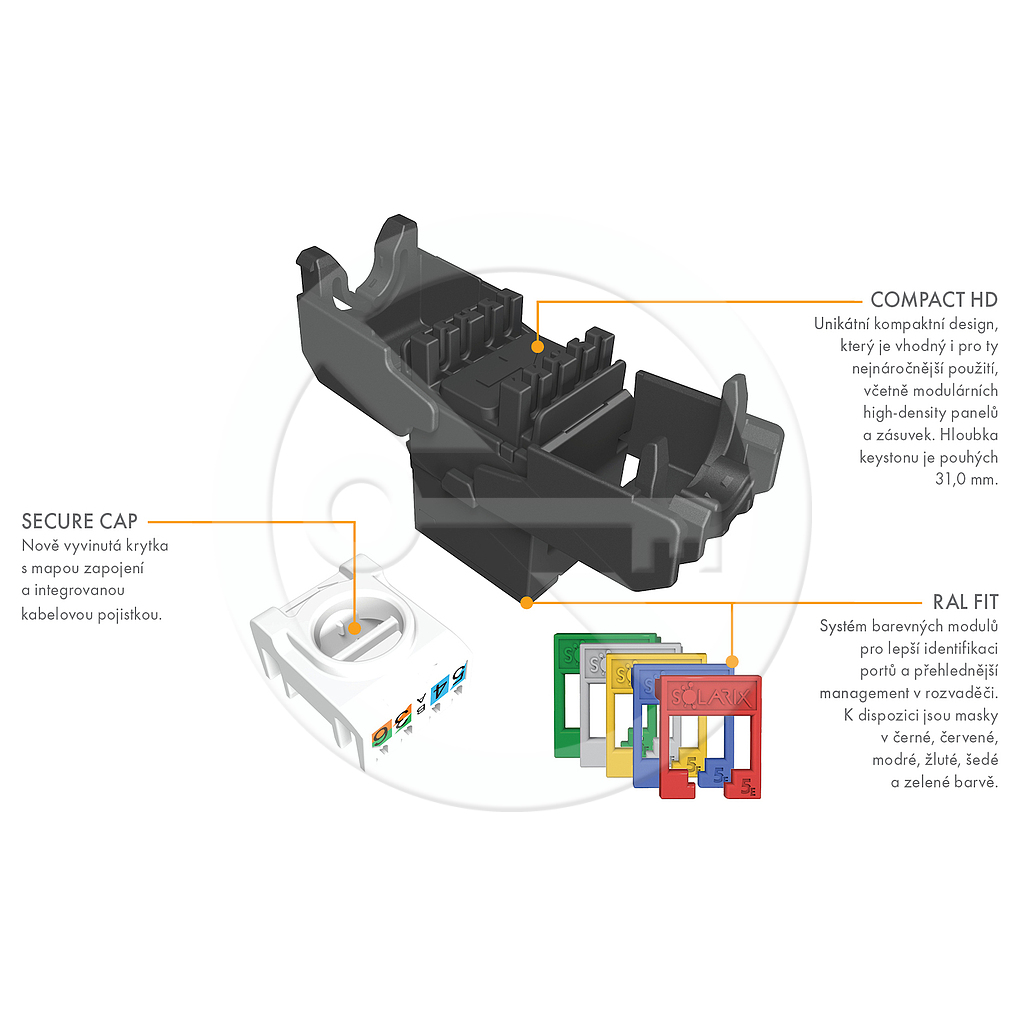 (Registrace)Solarix - samořezný keystone CAT5E UTP, RAL FIT moduly, SECURE CAP