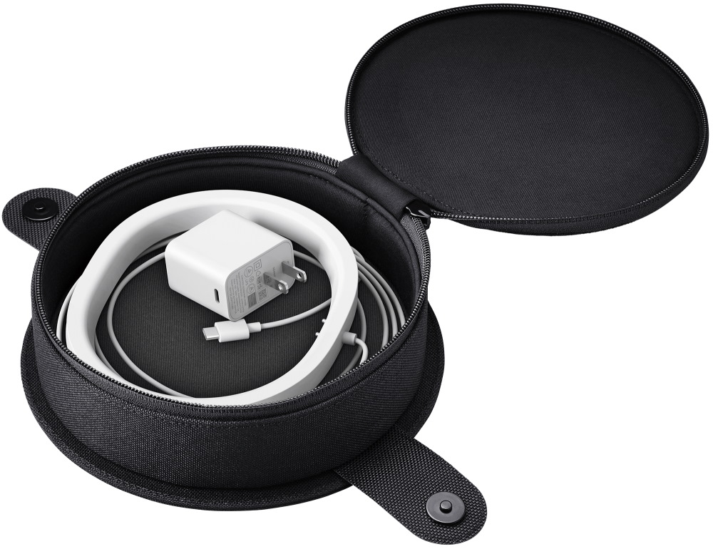 Taška obsahuje odpojitelný oddíl určený pro uložení bezdrátové nabíjecí základny nebo USB-C nabíječky. Nastavitelný ramenní popruh umožňuje pohodlné nošení a magnetické zapínání zajišťuje rychlé a bezpečné uzavření tašky.