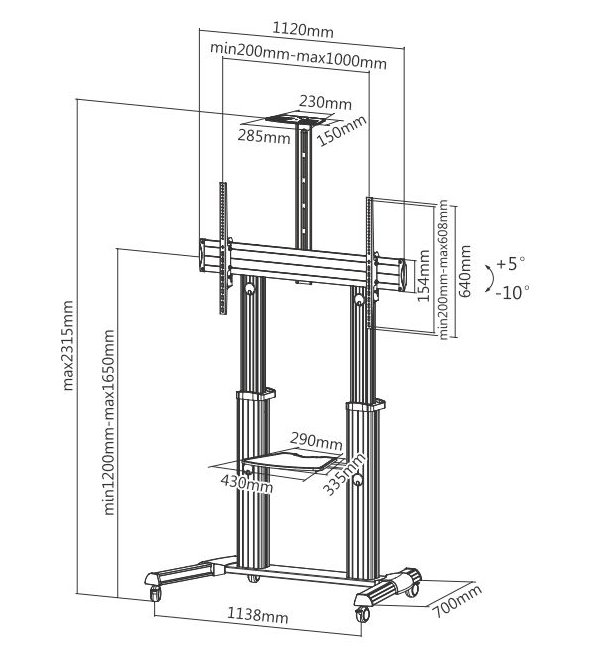 (Registrace)SUNNE by Elite Screens pojízdný TV stolek pro LCD a TV 60 - 100"/ nastavitelná výška/ max. VESA 600x1000/ hliníkový