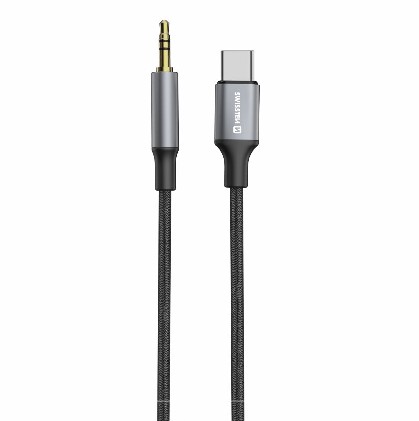 (Registrace)SWISSTEN AUDIO ADAPTÉR TEXTILE USB-C (samec) / 3,5 mm JACK (samec) 1,5M ČERNÝ (nahrazuje 73501303)