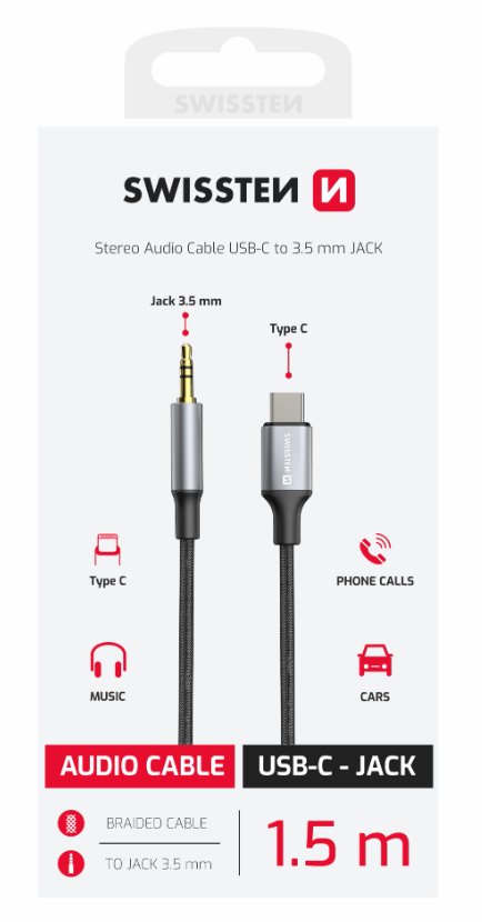 Hledáte kvalitní audio adaptér s konektory USB-C (samec) / 3,5mm Jackem (samec)? Našli jste správně! Audio adaptér SWISSTEN Textile USB-C (samec) / 3,5mm JACK (samec) v černém provedení a délce 1,5 m je skvělou volbou. Díky tomuto adaptéru snadno připojíte své oblíbené sluchátka nebo reproduktory s 3,5mm AUX vstupem k zařízením s USB-C konektorem, což ocení především uživatelé moderních telefonů a tabletů bez tradičního audio jacku.