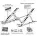 Stojánek na notebook z elegantního broušeného hliníku se hodí do každé kanceláře. Protiskluzové silikonové podložky poskytují pevnou podpěru a ochranné silikonové prvky zajistí ochranu proti poškrábání a sklouznutí notebooku. Potěší možnost nastavení sklonu a to až v šesti polohách.