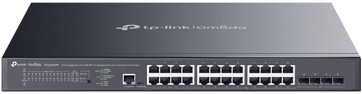 SG3428XMPP Omada 24portový gigabitový a 4portový 10GE SFP+ Managed switch L2+ s 16 porty PoE+ a 8 porty PoE++
